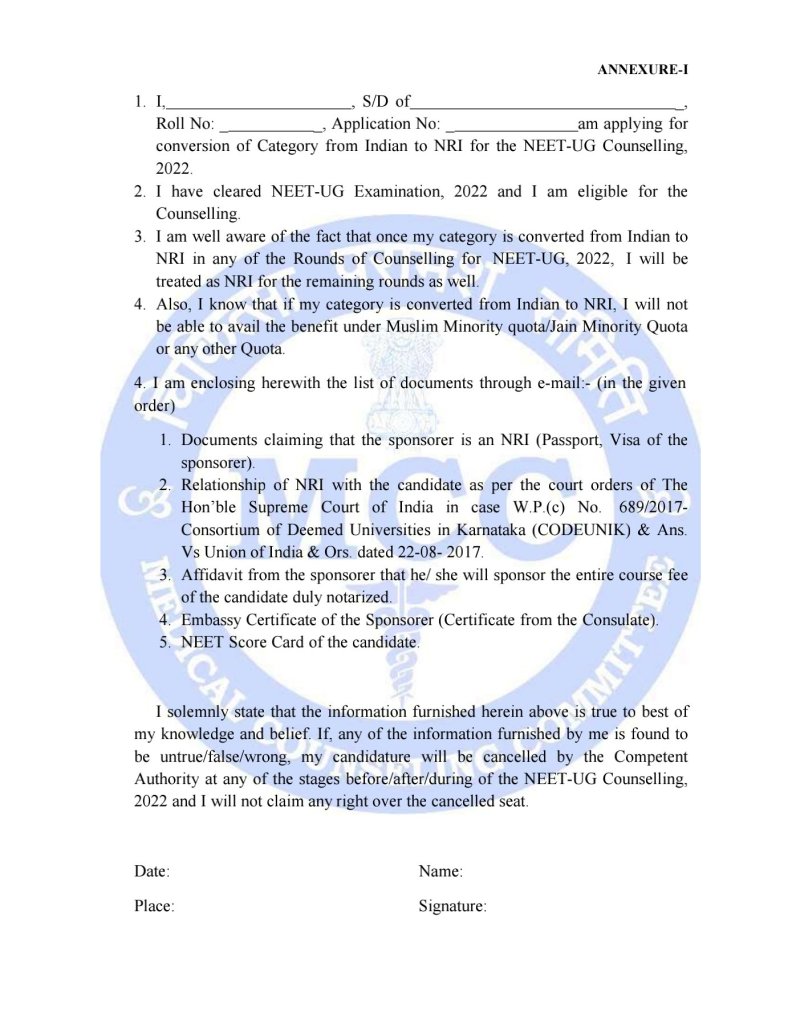 2 responses to “MCC NEET UG Notice for Conversion of Nationality from Indian to NRI”