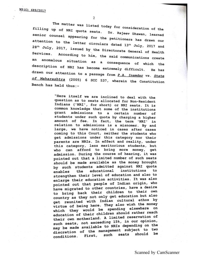 2. Relationship of NRI with the candidate as per the court orders of The Honβble Supreme Court of India in case W.P.(c) No. 689/2017-Consortium of Deemed Universities in Karnataka (CODEUNIK) & Ans.Vs Union of India & Ors. dated 22-08- 2017.
